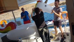 Du hast uns wie immer mit viel Umsicht und sicher, auch bei stürmischen 44+ Knoten Wind, durch das ägäische Meer navigiert, uns tolle Badebuchten und abwechslungsreiche Inselwelten gezeigt.